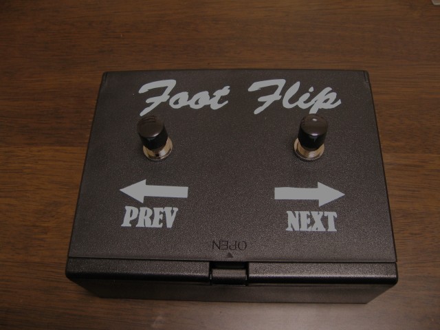 そこでギターのエフェクターのようなフットペダルでページをめくることのできる装置を作成しました。
